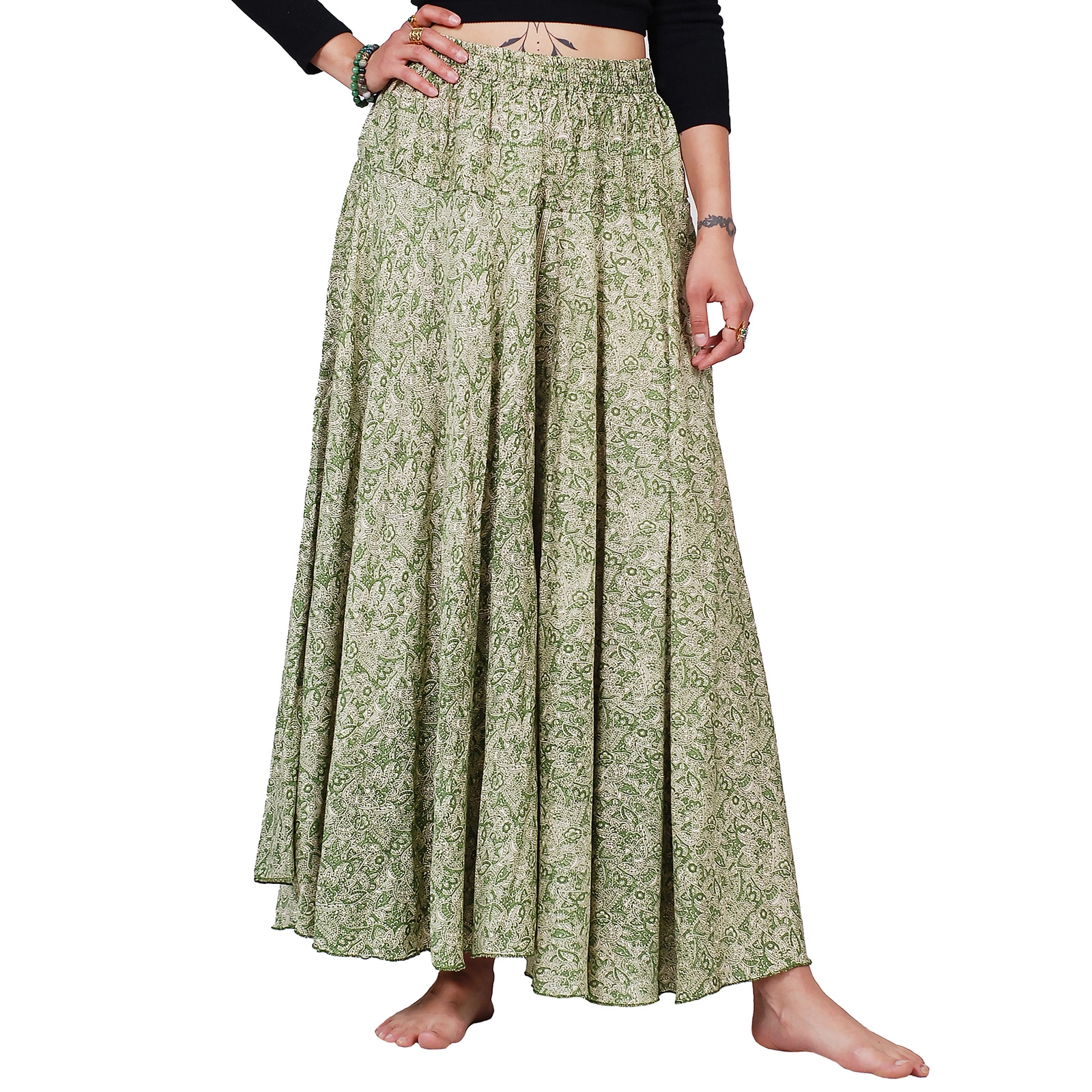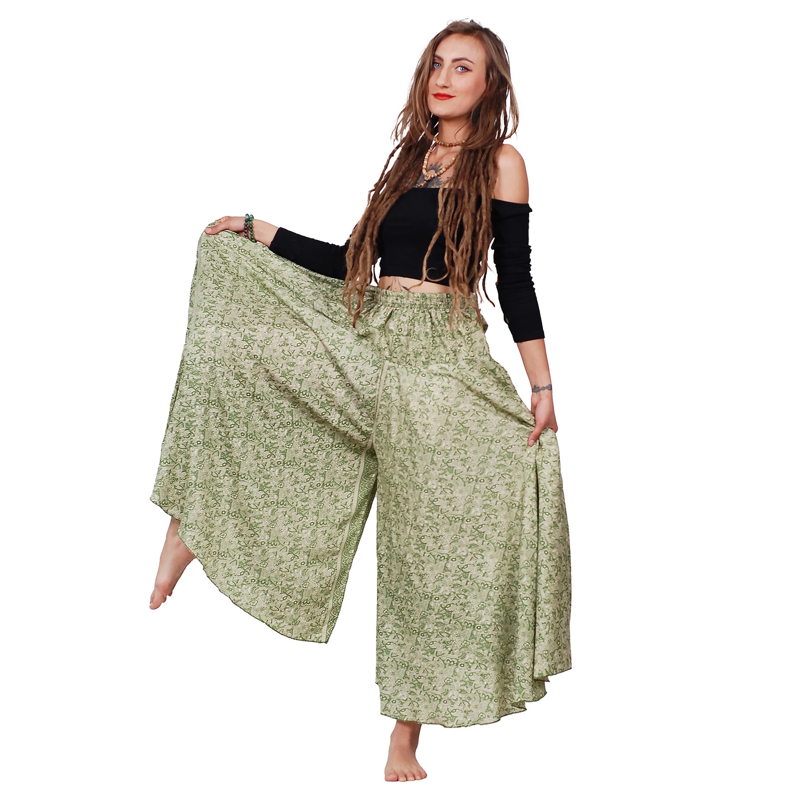 Wyróżniające się wzorem i lekkością spodnie motyl łączą funkcjonalność z artystycznym charakterem.