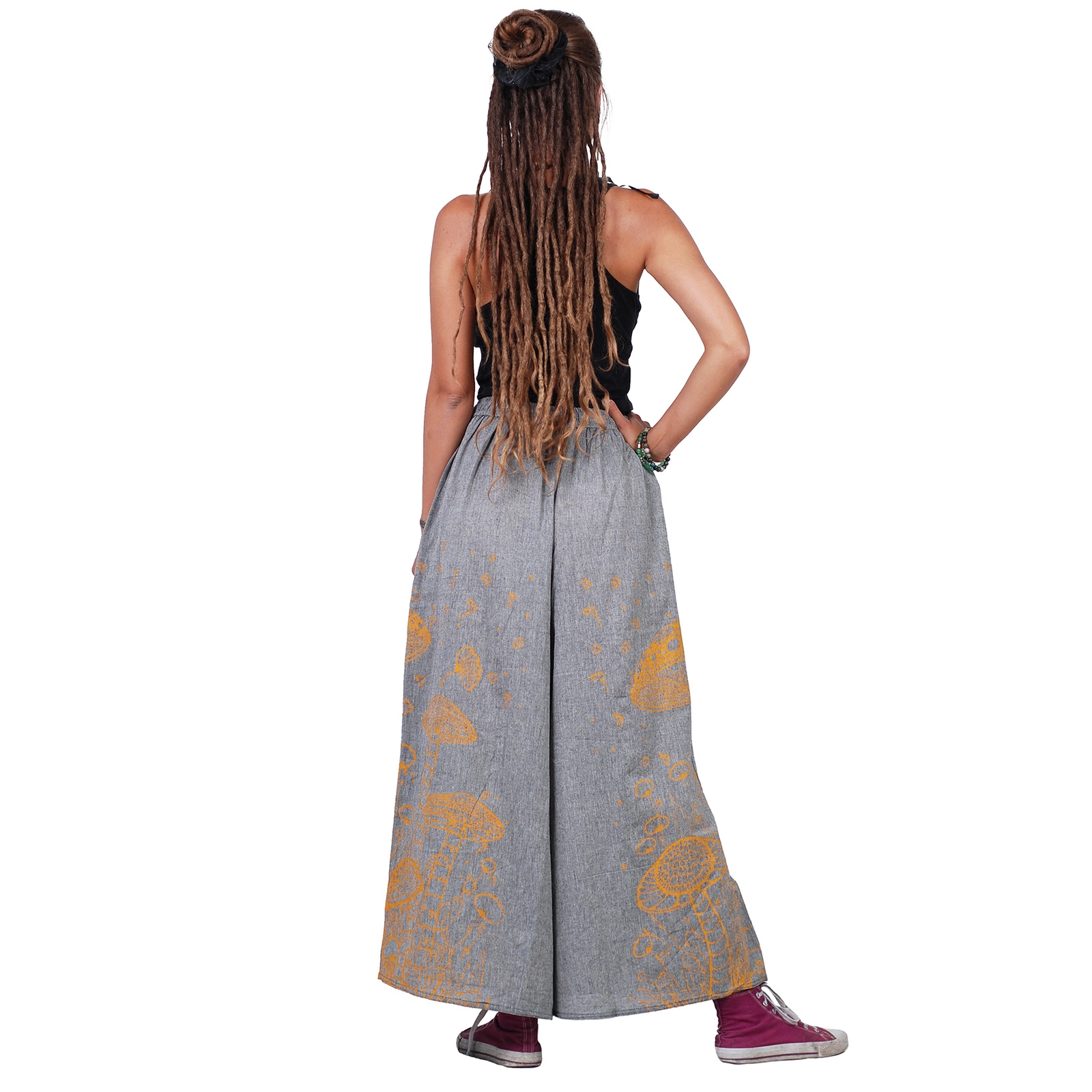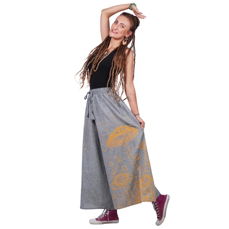 Wzór z motywem grzybów nadaje im unikalnego charakteru i artystycznego wyrazu. Spodnie palazzo w grzyby łączą styl boho z wygodą, tworząc idealny wybór dla osób ceniących oryginalne i swobodne stylizacje.