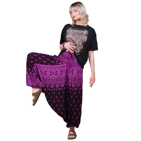 Szarawary Wzorzyste to wygodne i lekkie spodnie idealne na lato, podróże, jogę lub codzienny relaks. Szeroki krój z elastyczną talią dopasowuje się do sylwetki, a zwiewna tkanina z wiskozy daje poczucie swobody i komfortu przez cały dzień. Unikalne wzory inspirowane kulturą Tajlandii nadają im charakteru i sprawiają, że każda para wyróżnia się stylem. Szarawary Wzorzyste to połączenie wygody, lekkości i etnicznego designu w jednym elemencie garderoby.