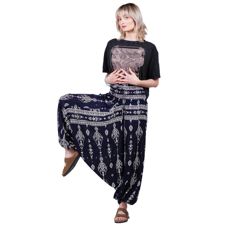 Szarawary Wzorzyste to wygodne i lekkie spodnie idealne na lato, podróże, jogę lub codzienny relaks. Szeroki krój z elastyczną talią dopasowuje się do sylwetki, a zwiewna tkanina z wiskozy daje poczucie swobody i komfortu przez cały dzień. Unikalne wzory inspirowane kulturą Tajlandii nadają im charakteru i sprawiają, że każda para wyróżnia się stylem. Szarawary Wzorzyste to połączenie wygody, lekkości i etnicznego designu w jednym elemencie garderoby.