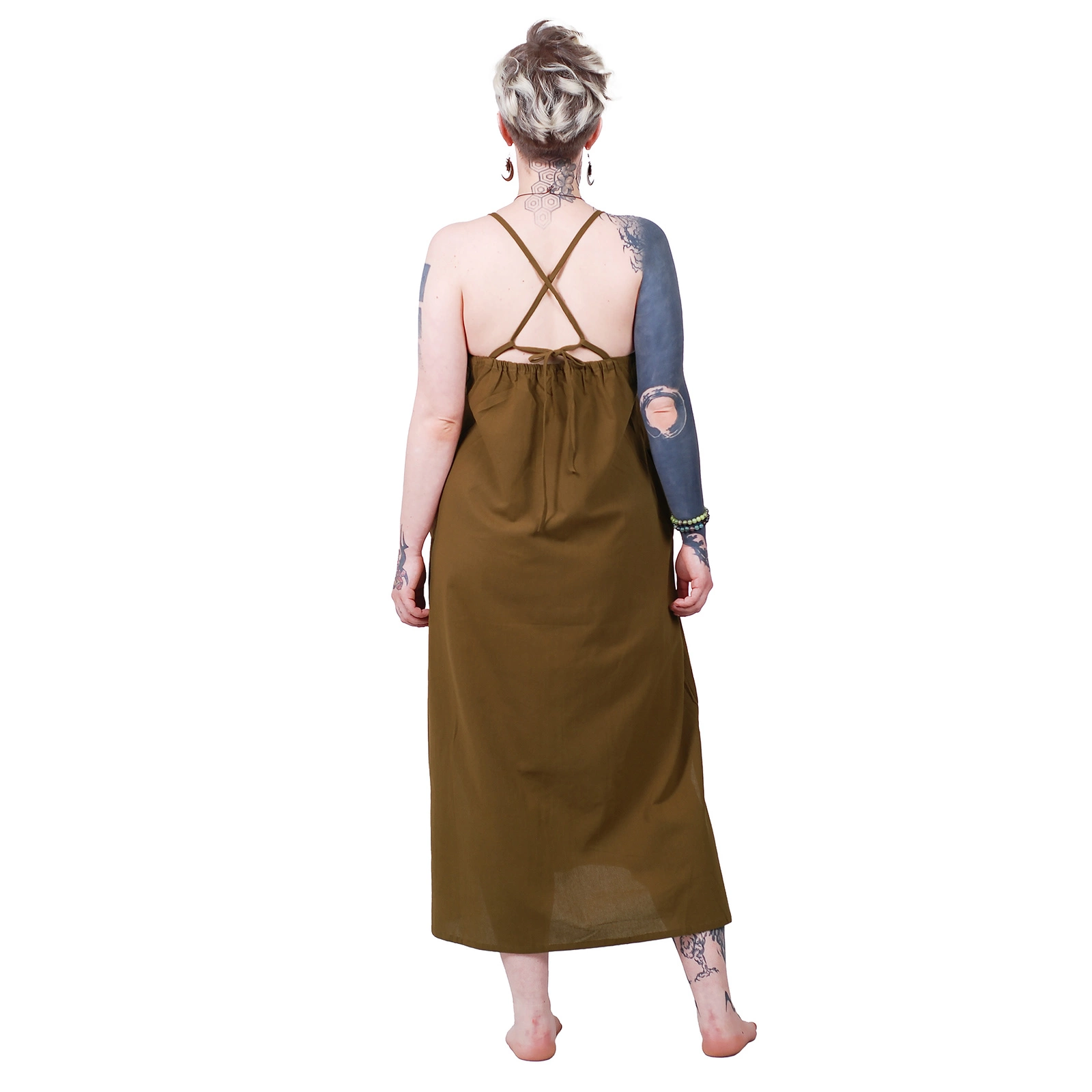 Sukienka bawełniana długa wykonana została z naturalnego materiału, który pozwala skórze oddychać i daje przyjemne uczucie lekkości. Dzięki swojej prostocie i funkcjonalności możesz zestawiać ją z różnymi dodatkami – od etnicznej biżuterii po minimalistyczne sandały.