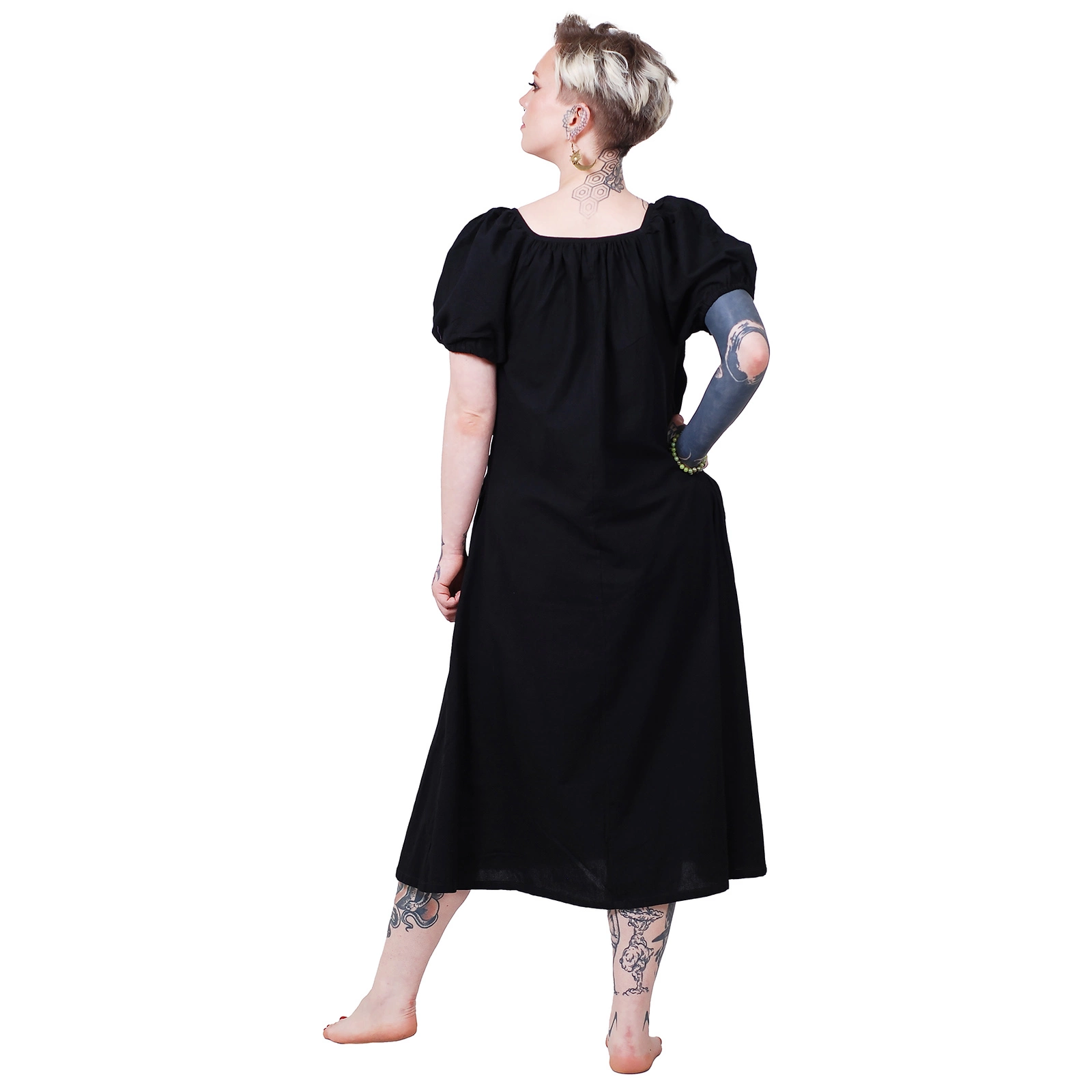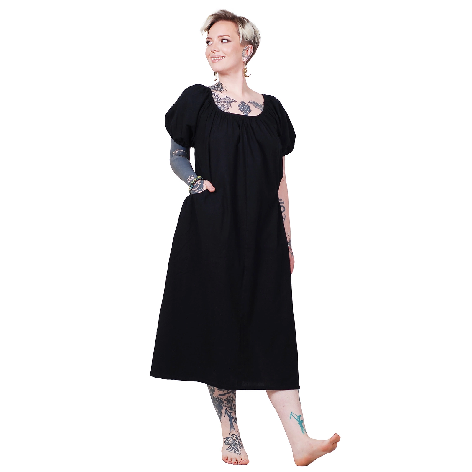 Sukienka bawełniana z rękawkami łączy wygodę naturalnego materiału z wyjątkowym, naturalnym stylem. Jej luźny krój sprawdzi się na różnych sylwetkach, a rękawki dodają jej kobiecego wdzięku.