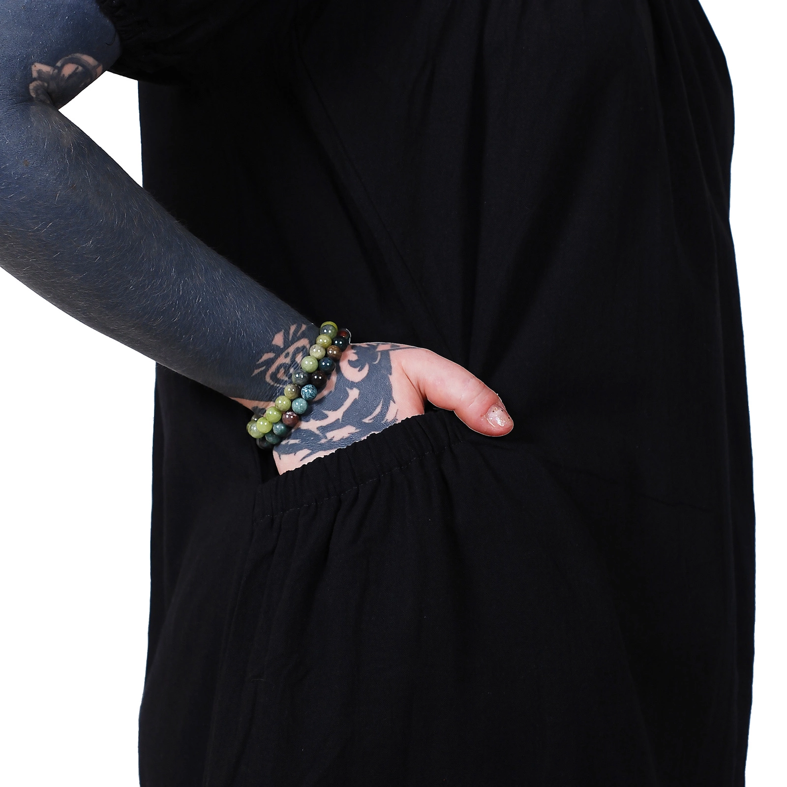 Przenieś się w świat naturalnego komfortu i subtelności dzięki sukience bawełnianej z rękawkami, ręcznie wykonanej w Tajlandii. To doskonały wybór na letnie spacery, spotkania z przyjaciółmi czy chwile relaksu w ogrodzie. Uszyta z lekkiej, oddychającej bawełny, zapewnia swobodę ruchów i przyjemne uczucie chłodu nawet w upalne dni.
