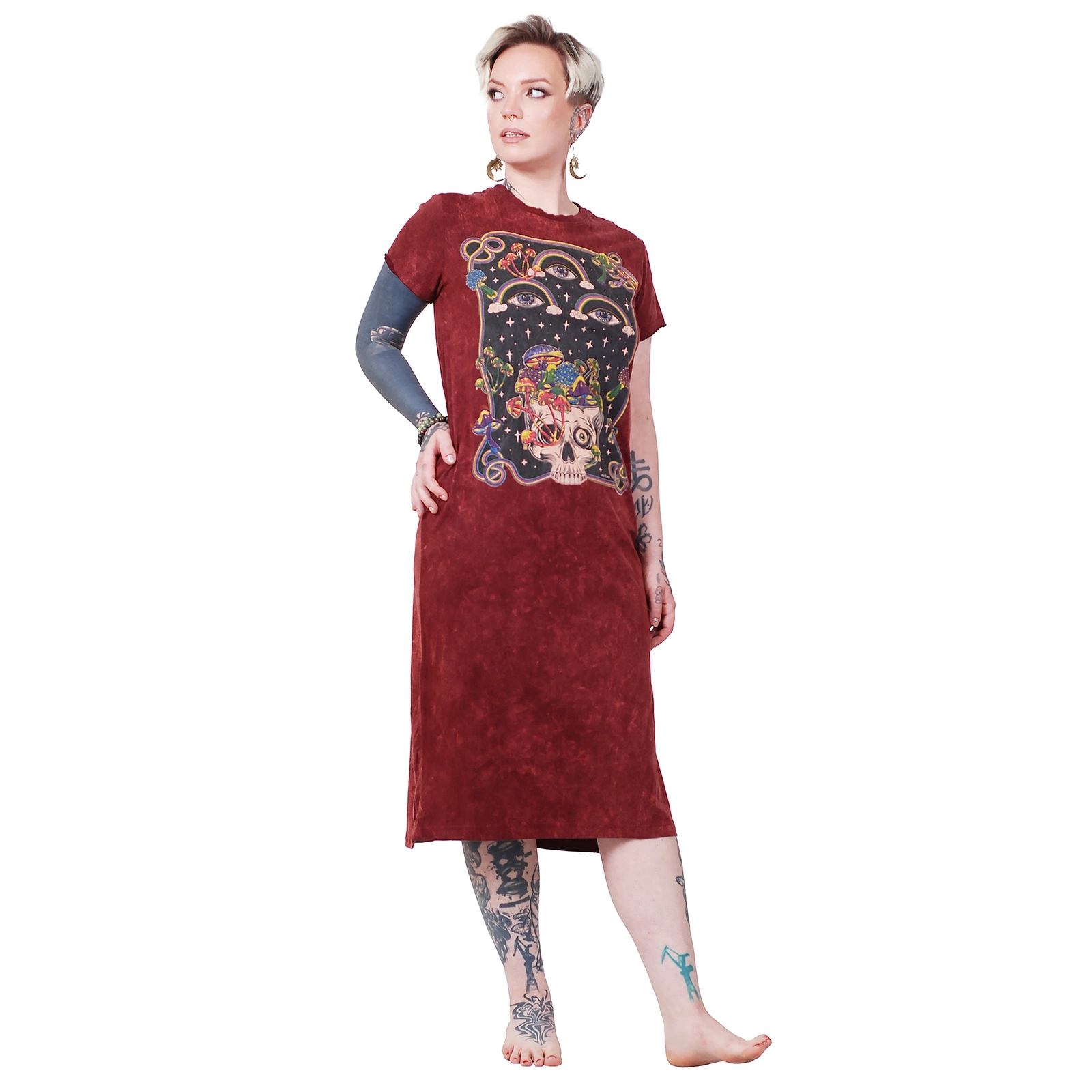 Sukienka bawełniana z nadrukiem to wygodna propozycja w stylu etno-streetwear, idealna na codzienne wyjścia, letnie festiwale i spokojne dni w domu. Dzięki prostemu krojowi z krótkim rękawem i długości midi, zapewnia swobodę ruchów i uniwersalne dopasowanie do sylwetki. Wyrazisty, artystyczny nadruk dodaje charakteru i podkreśla indywidualny styl.