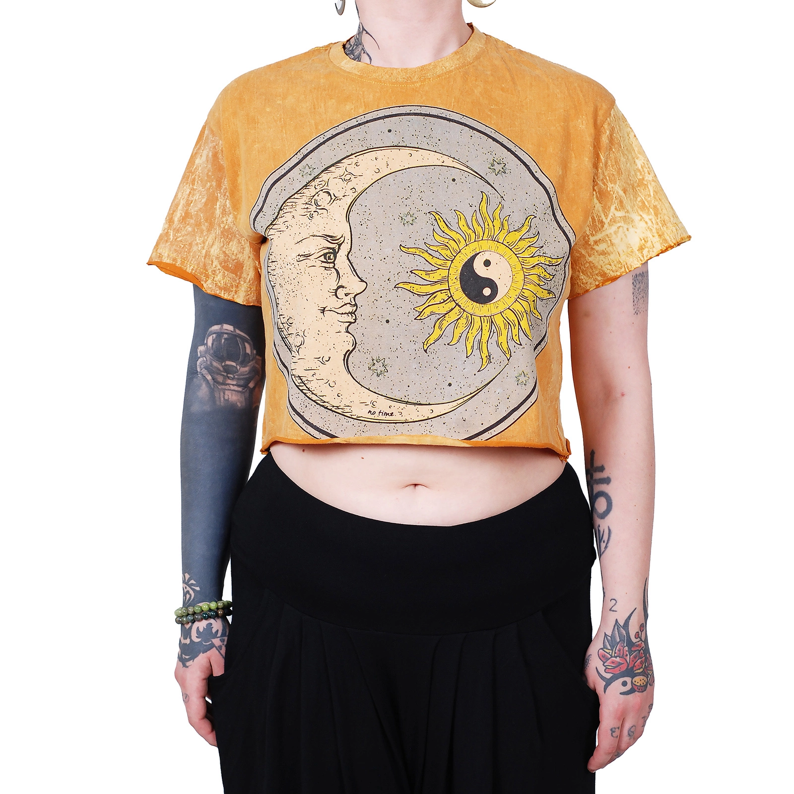 T-shirt krótki wyróżnia się efektownym nadrukiem inspirowanym kulturą Azji Południowo-Wschodniej i naturalnym wybarwieniem bawełny. Każdy egzemplarz może nieznacznie różnić się od siebie przez zastosowanie metody stonewash, co nadaje mu indywidualny charakter i podkreśla ręczne wykonanie.