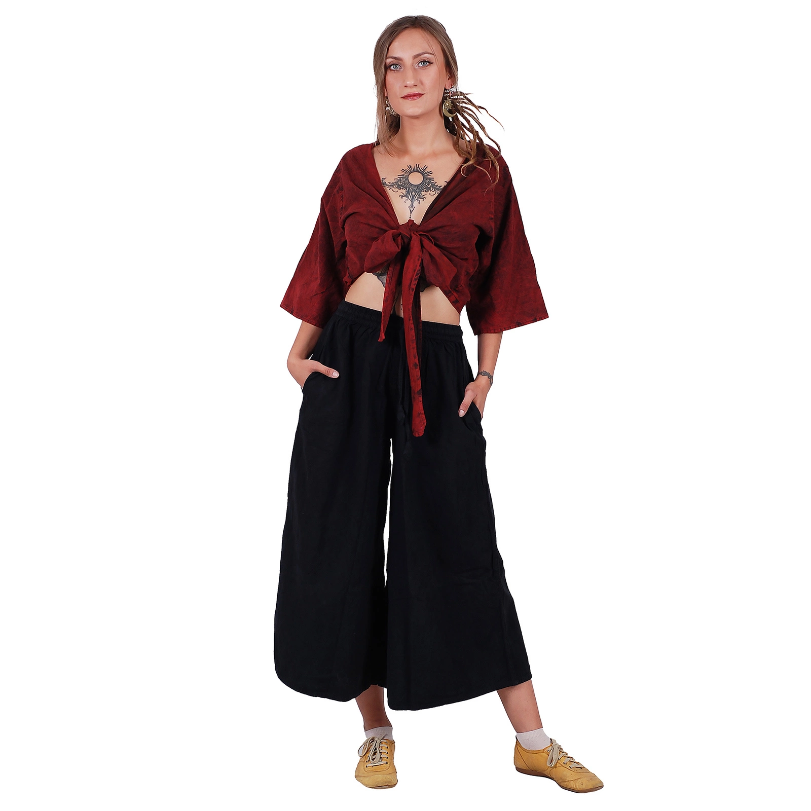 Lekki i wygodny top z Nepalu to doskonały wybór na lato lub jako uzupełnienie codziennych stylizacji. Wykonany w 100% z bawełny, zapewnia komfort noszenia i przewiewność, dzięki czemu sprawdzi się zarówno na co dzień, jak i w bardziej swobodnych okazjach. Unikalny design sprawia, że top z Nepalu wyróżnia się niepowtarzalnym charakterem i rękodzielniczym stylem. Dzięki swojej naturalności i starannemu wykonaniu top z Nepalu podkreśli indywidualny styl i doda lekko orientalnego akcentu do garderoby.