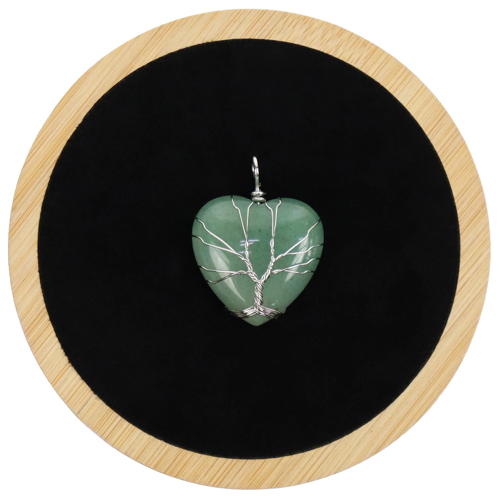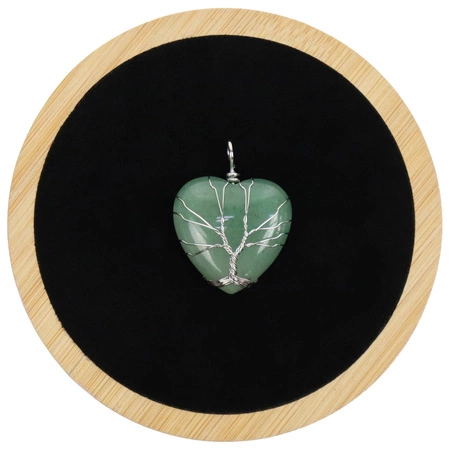 Wisiorek w kształcie serca wykonany z naturalnego awenturynu łączy zieloną barwę kamienia z delikatnym zdobieniem w formie drzewa. Każdy egzemplarz jest unikatowy – delikatne różnice w kolorze i fakturze kamienia sprawiają, że wisiorek jest jedyny w swoim rodzaju. Wisiorek kamienny z drzewem podkreśla indywidualny charakter i elegancję każdej stylizacji, łącząc naturalne piękno kamienia z precyzyjnym wykonaniem metalowych detali. To doskonały dodatek zarówno do codziennych, jak i bardziej formalnych outfitów, który przyciąga uwagę subtelnym blaskiem. Dzięki lekkiej konstrukcji i starannej obróbce, wisiorek jest wygodny w noszeniu i trwały, zachowując estetykę przez długi czas.